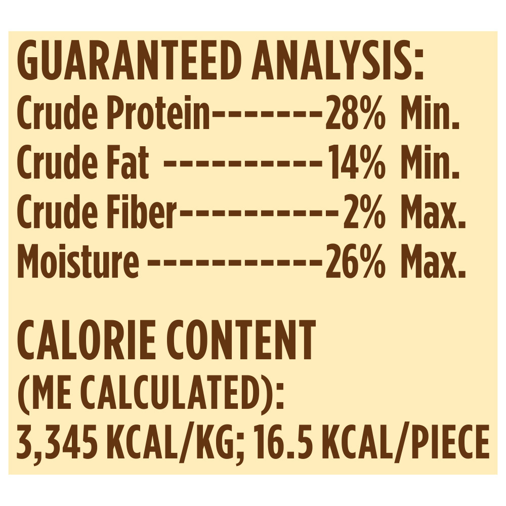Chicken, Vegetable Glycerin, Pea Starch, Potatoes, Brewers Dried Yeast, Dried Chicken Liver, Pea Protein, Dried Chicken Broth, Gelatin, Natural Flavor, Oatmeal, Oat Fiber, Vinegar, Paprika Oleoresin (for color).