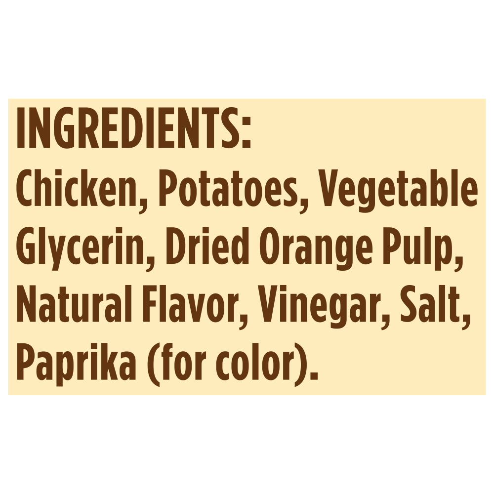 Chicken, Potatoes, Vegetable Glycerin, Citrus Fiber, Natural Flavors, Distilled Vinegar, Salt, Colored with PaprikaGuaranteed Analysis