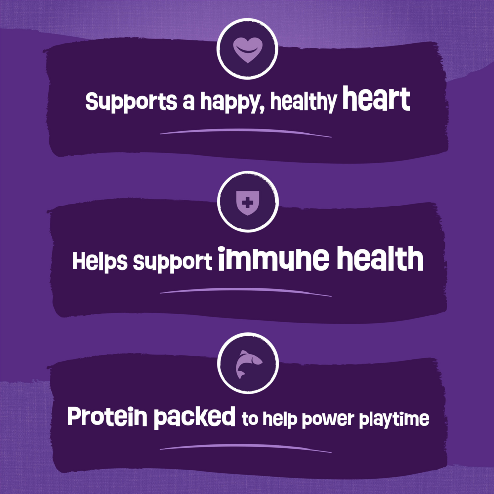 Give your cat a delectable flavor combination with Purina Friskies Surfin' & Turfin' Favorites dry cat food. Chicken, filet mignon, ocean whitefish, liver and salmon flavors deliver all her favorite tastes in one sensational serving, and the appealing shapes keep her excited about the foods you put in her dish. She'll love the enticing aroma, which lets her know something delicious awaits her, and you can feel good about the essential vitamins and minerals found in this tasty dry cat food. Featuring a formula that's complete and balanced for all life stages, this tempting recipe can follow her from her cuddly kitten days to her playful adult years for yummy consistency in her daily diet. Offer up a hearty helping of this Purina Friskies dry cat food every day, and watch as your feline friend gleefully nibbles her way to the bottom of her dish.Tempt your cat's taste buds with the assortment of flavors found in Purina Friskies Surfin' & Turfin' Favorites dry cat food. The beef, poultry and seafood flavors delight her senses with every scrumptious bite, and the enticing aroma leads your cat to her dish at feeding time. Let her hear the sound of the yummy kibble hitting her dish, and watch as she comes prancing in anticipation of a mouthwatering meal. With so much savory goodness in every serving, this dry cat food shows your cat you pay attention to her cravings. For even more variety at mealtime, alternate between this Purina Friskies recipe and our Purina Friskies Cat Concoctions wet cat foods, including Cat Concoctions Scrumptious Salmon & Chicken Liver Dinner Pate, and let her revel in the unique flavor combinations that have been chosen by cats. When it comes to caring for your pet, serving her nourishing, tasty meals is one of your top priorities. That's why we make quality the #1 ingredient in everything we produce. This Purina Friskies dry cat food is formulated to meet or exceed industry standards to give your cat a nourishing, tasty meal. We are proud to produce this recipe in our Purina-owned U.S. facilities, so you can rest easy knowing her meals are coming from a trusted source. Each batch is checked hourly for quality and safety to give you added peace of mind every time you reach for a can. The result is a delectable meal that's as delicious as it is nutritious, making it easy to care for her needs while giving her the flavors she adores. Fill her bowl each day with this purr-worthy Purina Friskies Surfin' & Turfin' Favorites dry cat food, and let your cat know just how much you care about her overall health and happiness with every flavor-filled bite.