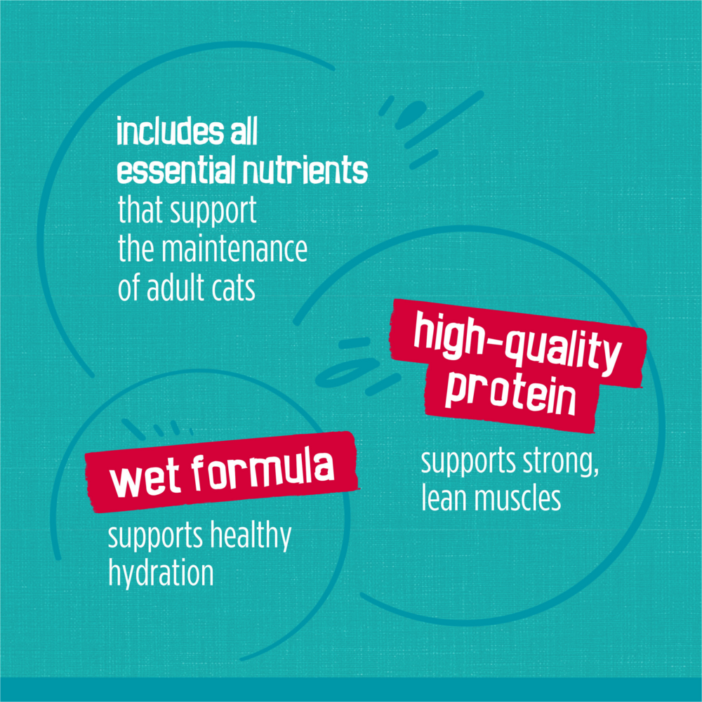 Keep a variety of your cat's foods ready for her at mealtime with this Purina Friskies Tasty Treasures wet cat food variety pack. With three different scrumptious recipes in each package, it's easy to keep your curious feline interested in mealtime, and the classic poultry and seafood flavors give her the delicious goodness that she unmistakably loves. Sprinkles of cheese flavor accent each recipe for added yum, and the tender shredded bites offer a palate-pleasing texture — all covered in a savory sauce sure to have even your finicky feline lick her dish clean. Because each recipe is formulated to deliver 100% complete and balanced nutrition for adult cats, this wet cat food helps support her overall wellness while providing the tastes she loves. Fill her dish with a different variety at each feeding, and watch as she delights in every delicious bite. Stock your pantry with this Purina Friskies Tasty Treasures wet cat food variety pack, and give your cat mealtime options that provide 100% complete and balanced nutrition for adult cats. This variety pack contains Tasty Treasures With Ocean Fish, Tasty Treasures With Tuna & Cheese, and Tasty Treasures With Turkey & Cheese, delivering the poultry and seafood flavors she adores. She'll love the sprinkles of cheese flavor in every savory bite, and you can feel good about feeding her these recipes thanks to the essential vitamins and minerals found in every serving. With 12 cans in each package, this variety pack ensures you always have something delectable to pour into her dish. For even more variety in your cat's diet, alternate between these wet cat food recipes and our Purina Friskies Tender & Crunchy Combo dry cat food. You want to know your cat is getting safe, delicious and nutritious meals, which is why we formulate this collection of wet cat foods to meet or exceed industry standards. We strive to make quality the number one ingredient in everything we produce. That's why each batch of this wet canned food undergoes rigorous quality and safety checks throughout every step in the production process, so you can feel confident every time you open a can of Purina Friskies Tasty Treasures. Sustainability, too, is a core concept at Purina, and we see our commitment through by seeking out responsibly sourced ingredients and eco-friendly packaging options. Each can of this wet cat food, along with the carton, is recyclable, so your purchases can have a positive impact on the world around you. Show your cat how much you care about her happiness and well-being when you feed her Purina Friskies Tasty Treasures wet cat food, and watch as she nibbles every last delectable morsel.