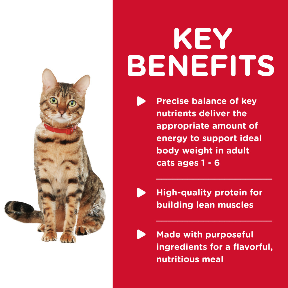 Give your grown cat a delicious feast with the balanced nutrition he or she needs. Hill's Science Diet Adult Healthy Cuisine Poached Salmon & Spinach Medley combines the delicious flavors of real salmon and tender spinach in a mouthwatering sauce. The precise balance of key nutrients provides adult cats with quality protein for lean muscle, and clinically proven antioxidants for strong feline immunity. If you want to keep your kitty happy during the prime years, this adult cat food made with natural ingredients is one to try. There’s more to love with the new look of Science Diet®. Some of our products also have new names, new kibble shapes & new formulas.• Adult cat food with a precise balance of key nutrients to support ideal energy and body weight in grown felines • Provides your cat with high-quality protein to help maintain lean muscle • Made with purposeful, easily digestible ingredients your adult cat will love • Supports a grown cat's immunity with clinically proven antioxidants and Vitamin C+E Made with natural ingredients • #1 Veterinarian Recommended Delicious poached salmon paired with tender spinach in a mouthwatering sauce