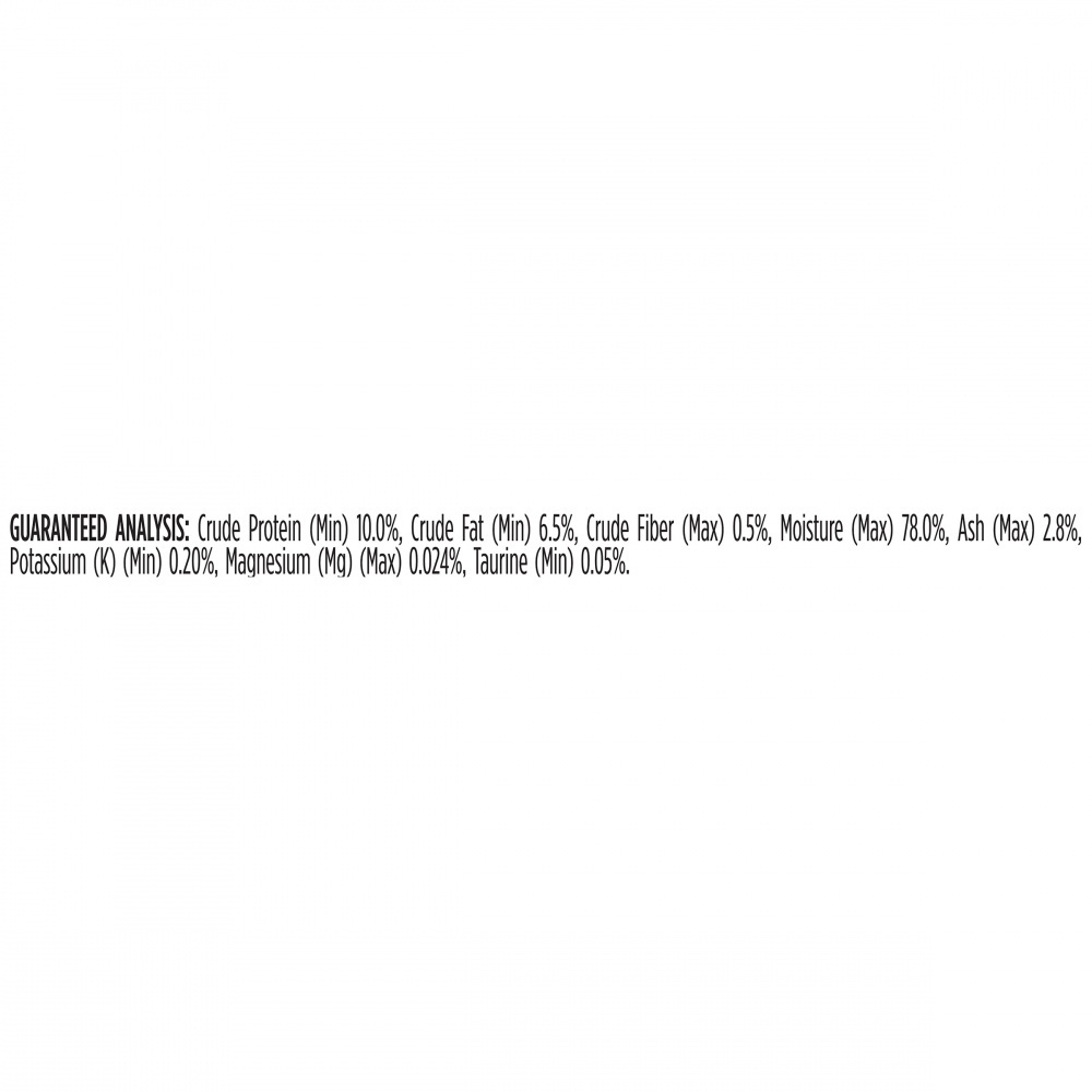 Ocean Whitefish, Meat By-Products, Chicken, Water, Chicken By-Products, Rice, Guar Gum, MINERALS [Potassium Chloride, Zinc Sulfate, Ferrous Sulfate, Manganese Sulfate, Copper Sulfate, Potassium Iodide], Potassium Chloride, Salt, Carrageenan, Choline Chloride, Vitamin E Supplement, VITAMINS [Thiamine Mononitrate, Vitamin E Supplement, Niacin, Calcium Pantothenate, Vitamin A Supplement, Menadione Sodium Bisulfite Complex (Vitamin K), Pyridoxine Hydrochloride, Riboflavin Supplement, Vitamin B-12 Supplement, Biotin, Folic Acid, Vitamin D-3 Supplement], Taurine. C474120Crude Protein (Min)…10.0%, Crude Fat (Min)…6.5%, Crude Fiber (Max)…0.5%, Moisture (Max)…78.0%, Ash (Max)…2.8%, Potassium (K) (Min)…0.20%, Magnesium (Mg) (Max)…0.024%, Taurine (Min)…0.05%
