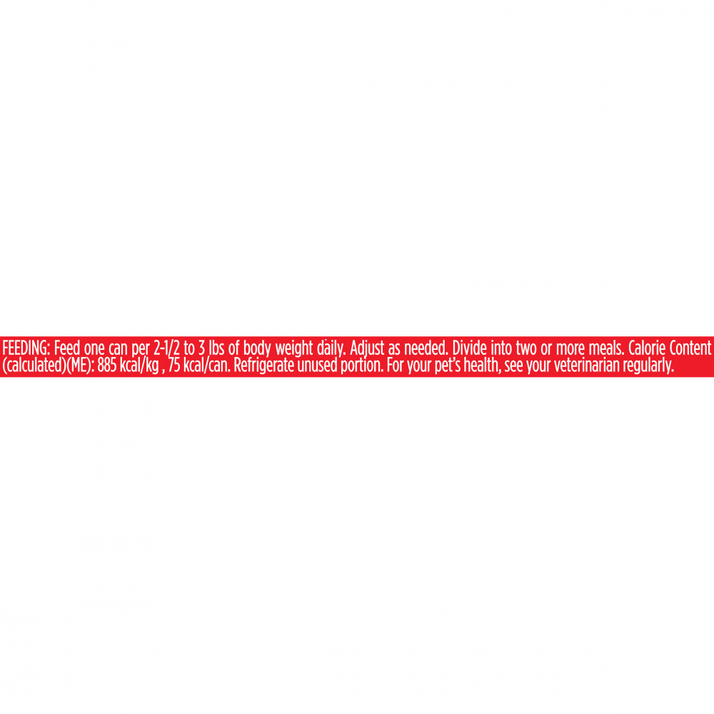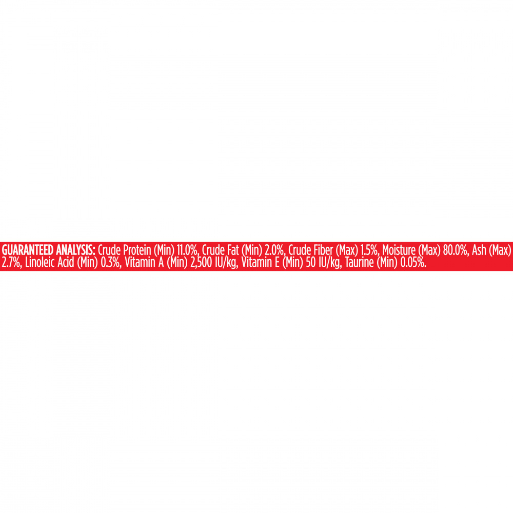 Water sufficient for processing, beef, liver, wheat gluten, meat by-products, chicken, corn starch-modified, artificial and natural flavors, salt, soy protein concentrate, added color, tricalcium phosphate, potassium chloride, taurine, choline chloride, thiamine mononitrate, Vitamin E supplement, zinc sulfate, ferrous sulfate, niacin, calcium pantothenate, Vitamin A supplement, menadione sodium bisulfite complex (source of Vitamin K activity), copper sulfate, manganese sulfate, pyridoxine hydrochloride, riboflavin supplement, Vitamin B-12 supplement, biotin, folic acid, Vitamin D-3 supplement, and potassium iodide