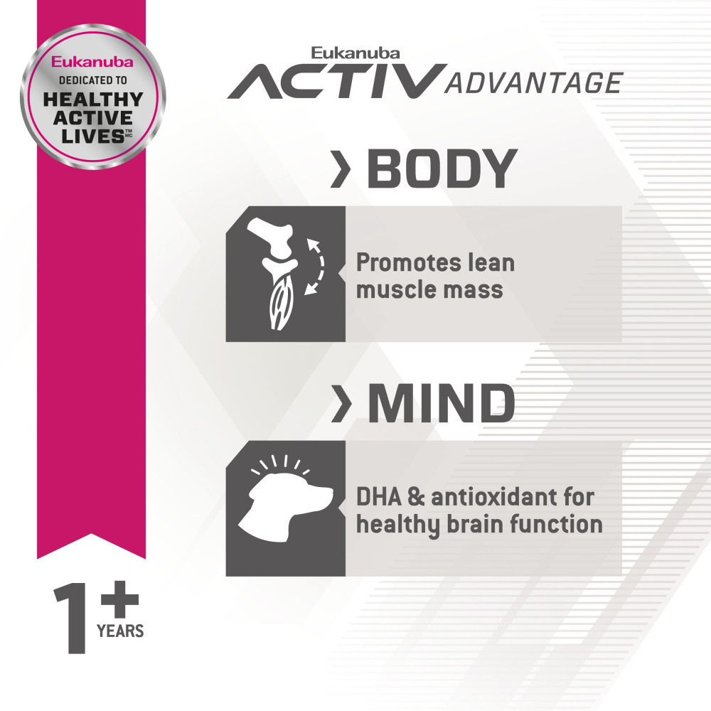 - SUPPORTS ACTIVE DOGS: Over 50% more glucosamine (vs. Eukanuba Adult Medium Breed Dry Dog Food) and chondroitin sulfate help support lean muscles and joint health in your big dog.