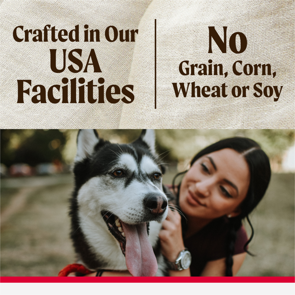 Connect your dog to an ancestral diet with Merrick Backcountry Healthy Grains, Great Plains Red Meat Recipe. Real deboned beef is the first ingredient in this natural, with added vitamins, minerals, and nutrients, recipe, a high protein dog food that helps maintain lean muscle mass and healthy energy levels. This real meat dog food with beef and lamb contains a holistic blend of kibble and freeze-dried raw pieces inspired by an ancestral canine diet and is crafted to provide the taste of raw dog food in a delicious and convenient recipe. There are easily digestible oats, and wholesome ingredients included in this dry dog food with grains recipe to support a complete and balanced adult dog food. This premium dog food is made without potatoes or lentils and contains no artificial flavors or preservatives. Merrick Backcountry dog food recipes are proudly founded in Hereford, Texas, crafted in USA facilities.
