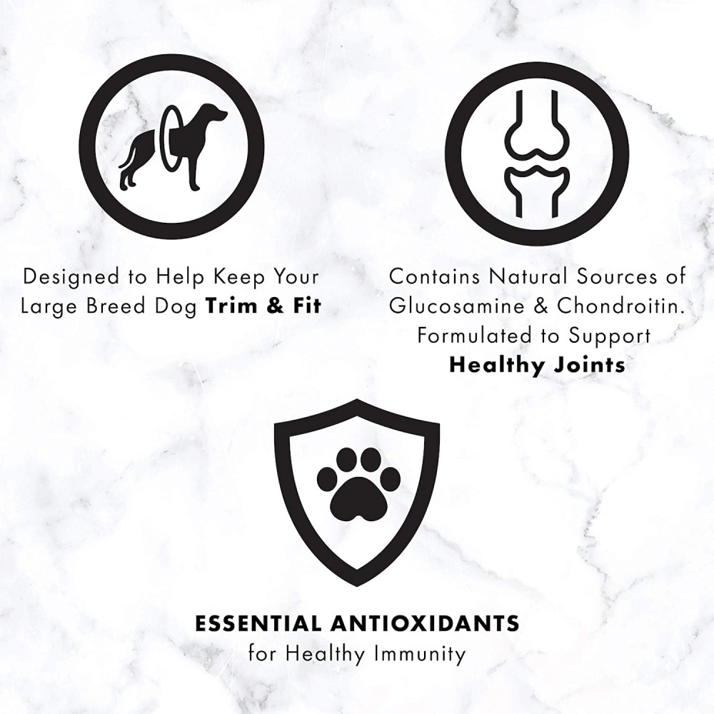 Lamb, Lamb Meal (source of Glucosamine and Chondroitin Sulfate), Brewers Rice, Rice Bran, Chickpeas, Whole Brown Rice, Split Peas, Whole Grain Oatmeal, Pea Protein, Chicken Fat (preserved with mixed Tocopherols), Natural Flavor, Sunflower Oil (preserved with mixed Tocopherols), Soybean Oil (preserved with mixed Tocopherols), Potassium Chloride, Salt, Choline Chloride, DL-Methionine, Taurine, Zinc Sulfate, Niacin Supplement, Vitamin E Supplement, Calcium Pantothenate, Riboflavin Supplement (Vitamin B2), Pyridoxine Hydrochloride (Vitamin B6), Vitamin B12 Supplement, Iron Amino Acid Chelate, Copper Amino Acid Chelate, Selenium Yeast, Biotin, Manganese Amino Acid Chelate, Vitamin A Supplement, Thiamine Mononitrate (Vitamin B1), Vitamin D3 Supplement, Potassium Iodide, Folic Acid, Rosemary Extract, Decaffeinated Green Tea Extract, Spearmint Extract.Guaranteed Analysis
