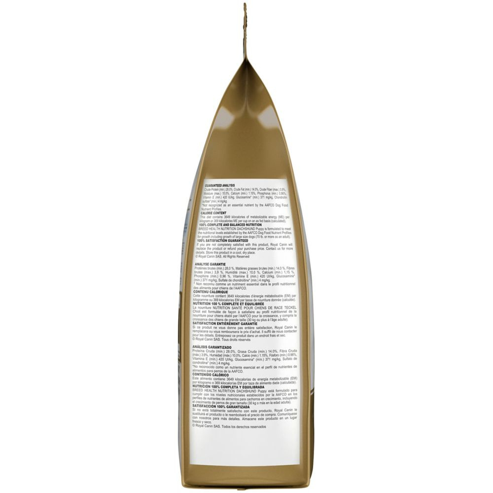 Royal Canin knows what makes your Dachshund puppy magnificent is in the details. Doxies are playful and energetic wiener dogs with short, stubby legs and sausage-like bodies. They can benefit from the right growth formula to provide immune system support and digestive care—and help them maintain bone and joint health, especially as their delicate spine develops during puppyhood. Royal Canin Dachshund dry puppy food is tailor-made nutrition created just for your pure breed Dachshund puppy. Whether you have a miniature or standard Dachshund, this exclusive breed-specific diet is uniquely formulated for your Dachshund puppy, with the specific nutrients to help them thrive. The customized small-shaped kibble is specially designed for your small breed’s pointed muzzle and tiny jaw, making it easy for them to pick up and chew. An exclusive mix of antioxidants and vitamin E supports their developing immune system and keeps their body growing strong. An appropriate combination of calcium and phosphorus helps your pup develop strong bones and healthy joints. And highly digestible proteins and precise fiber content support healthy digestion to promote optimal stool quality and reduce unpleasant stool odors. Mix in or complement this dry kibble with Royal Canin Puppy wet dog food. And once your Dachshund puppy is over 10 months old, transition them to Royal Canin Dachshund Adult dog food for precise nutrition into the adult years. With nearly 50 years of scientific research and observation, Royal Canin continues to deliver targeted nutrition to feed every pet’s magnificence. Not satisfied? Then neither are we. Our breed health formulas are 100% satisfaction guaranteed. (Just contact us for more details.Royal Canin Dachshund Puppy dry dog food is designed to meet the nutritional needs of purebred Dachshunds 8 weeks to 10 months oldExclusive tailor-made kibble to help Dachshund puppies pick up and chew their foodHelps protect puppy’s developing immune system and natural defenses with an exclusive complex of antioxidants including vitamin EMaintains bone & joint health with appropriate levels of calcium and phosphorus to help support tiny limbs and a long backboneSupports digestive health and promotes optimal stool quality with highly digestible proteins and precise fiber