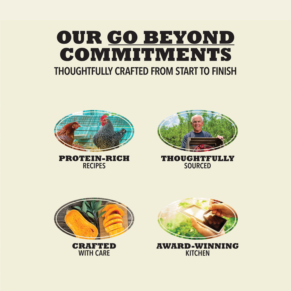 - Small breed dog food kibble recipe features free-run* chicken, free-run* turkey and eggs and is balanced to include 60 percent** animal ingredients and 40 percent*** wholesome grains, fruit, vegetables and nutrients