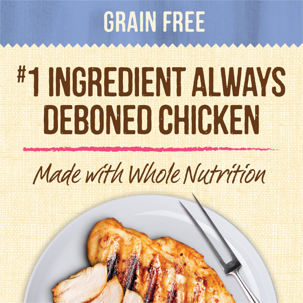 DEBONED CHICKEN, CHICKEN BROTH, TURKEY BROTH, CHICKEN LIVER, DEBONED TURKEY, DRIED EGG WHITES, POTATO STARCH, POTATOES, PEAS, APPLES, RED PEPPERS, GUAR GUM, SUNFLOWER OIL, SALMON OIL (PRESERVED WITH MIXED TOCOPHEROLS), TRICALCIUM PHOSPHATE, SODIUM PHOSPHATE, SALT, NATURAL FLAVOR, POTASSIUM CHLORIDE, MINERALS (ZINC AMINO ACID CHELATE, IRON AMINO ACID CHELATE, COPPER AMINO ACID CHELATE, MANGANESE AMINO ACID CHELATE, SODIUM SELENITE, COBALT AMINO ACID CHELATE, POTASSIUM IODIDE), GROUND FLAXSEED, CHOLINE CHLORIDE, VITAMINS (VITAMIN E SUPPLEMENT, THIAMINE MONONITRATE, NIACIN SUPPLEMENT, d-CALCIUM PANTOTHENATE, VITAMIN A SUPPLEMENT, RIBOFLAVIN SUPPLEMENT, BIOTIN, VITAMIN B12 SUPPLEMENT, PYRIDOXINE HYDROCHLORIDE (VITAMIN B6), VITAMIN D3 SUPPLEMENT, FOLIC ACID), XANTHAN GUM, ROSEMARY EXTRACTGuaranteed Analysis