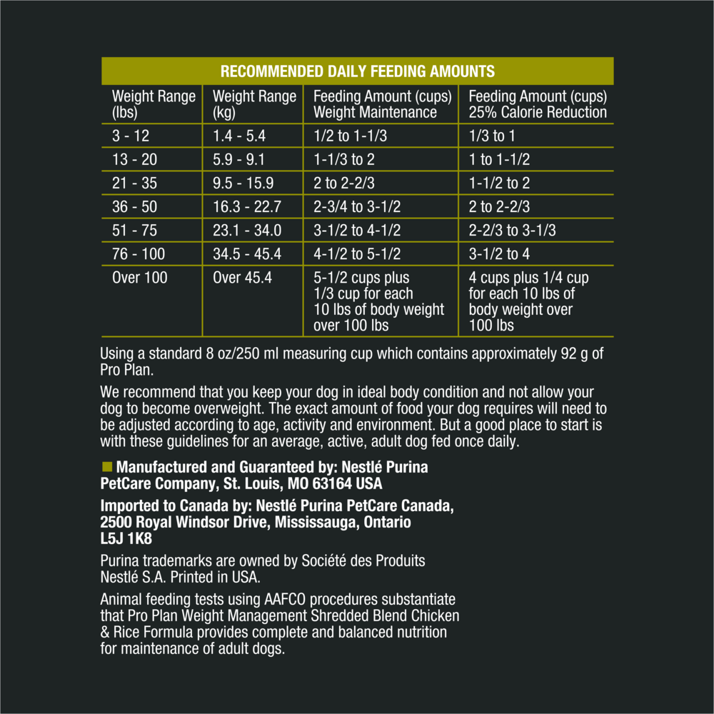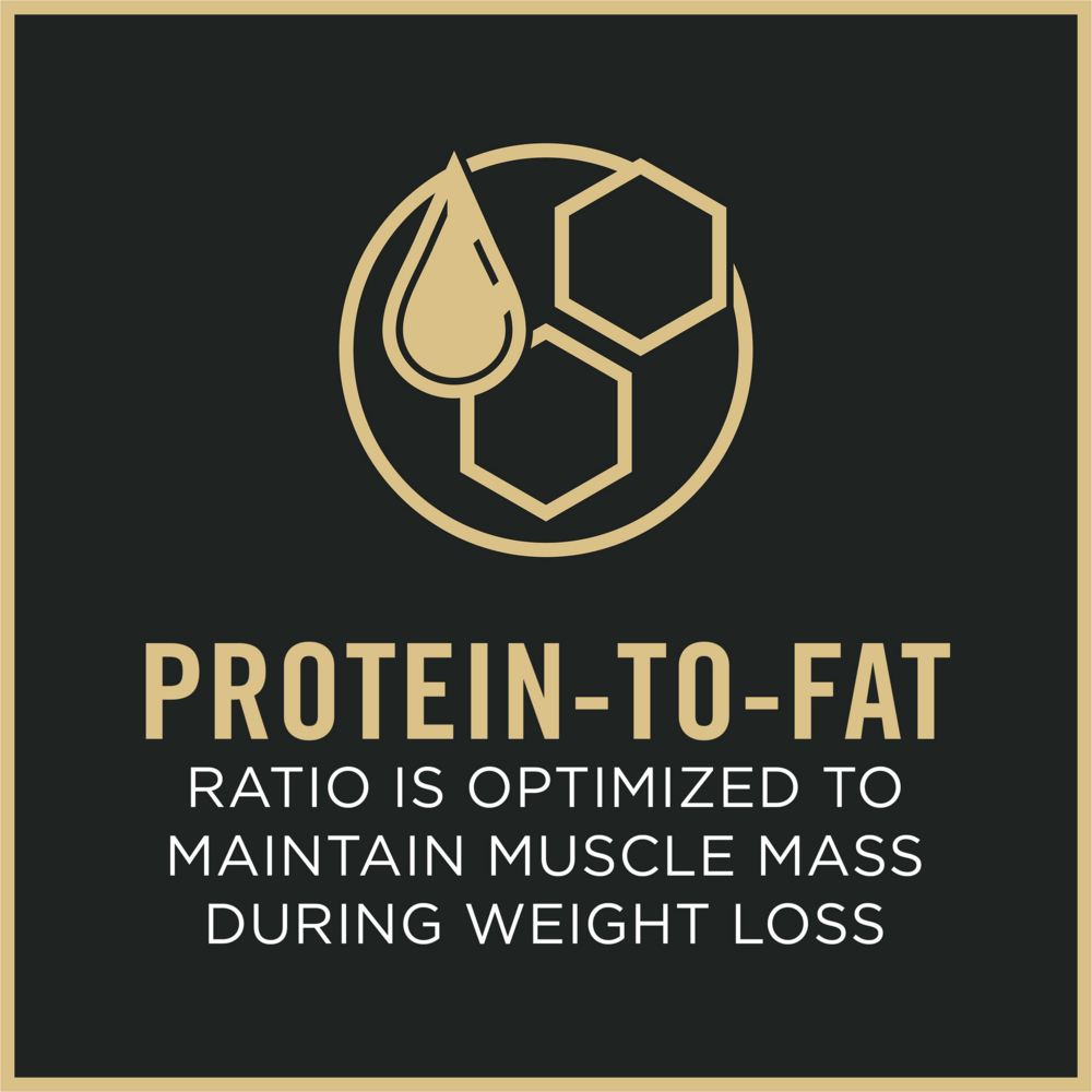 Specialized shredded blend formula for overweight and less active adult dogs. Protein-to-fat ratio is optimized to maintain muscle mass during weight loss.