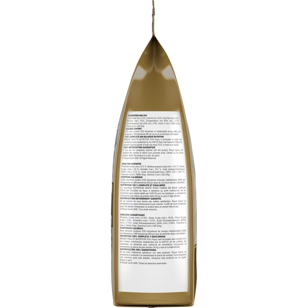 Royal Canin knows what makes your Pug puppy magnificent is in the details. With their flat muzzles, wrinkled faces, and curly-Q tails, Pugs are happy little dogs that can play or sleep all day. They can benefit from the right growth formula for immune system support, skin and coat health, and digestive care during the puppy stage. Royal Canin Pug dry puppy food is tailor-made nutrition created just for your purebred Pug puppy. This exclusive breed-specific diet is uniquely formulated for your Pug puppy, with the specific nutrients to help them thrive. The custom kibble is specially designed for your Pug’s short, square muzzle, making it easy for them to pick up and chew. An exclusive mix of antioxidants including vitamin E supports their developing immune systems and keeps their bodies growing strong. Essential nutrients like EPA and DHA from fish oil help nourish healthy skin and coat. And high-quality proteins and prebiotics promote healthy digestion and optimal stool quality. Once your Pug is over 10 months old, transition them to Royal Canin Pug Adult dog food for precise nutrition into the adult years.• FORMULATED FOR PUREBRED PUGS: Royal Canin Pug Puppy Dry Dog Food is designed to meet the nutritional needs of purebred Pugs 8 weeks to 10 months old• SPECIALIZED KIBBLE: Unique kibble design helps small dogs easily pick up and chew their food• HEALTHY DEVELOPMENT: Exclusive complex of antioxidants, including vitamin E, helps support puppy development of the immune system• SKIN SUPPORT: Reinforces the skin barrier with essential nutrients to support healthy skin and coat• OPTIMAL STOOL: Supports healthy digestion and promotes optimal stool quality with high-quality proteins and prebiotics