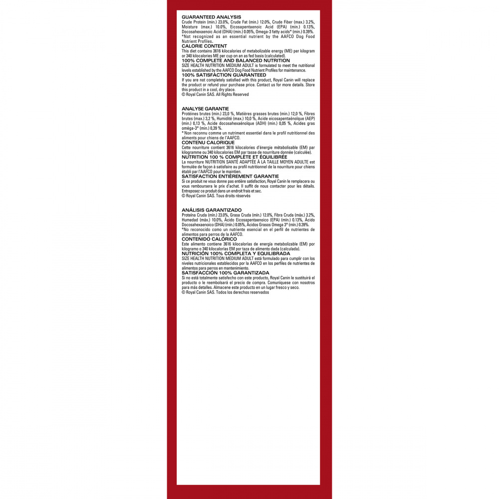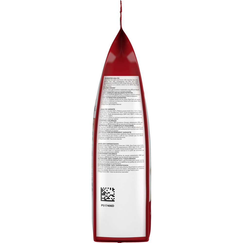 With countless dog food options out there that feature formulas focused on ingredients, how do you know what nutrition is right for your pet? No matter how big or small your dog is, Royal Canin has a right-sized diet, made with the precise amount of nutrients needed for every stage of their magnificent life.Most medium-sized dogs are known for their seemingly endless energy. Whether their favorite thing is swimming, exploring, or lots of walks, they’re always on the go. These pets need special nutritional support to help keep them running, jumping, and playing all day, every day. Royal Canin Medium Adult dry dog food is a tailored diet made to feed your dog’s high-energy lifestyle. An exclusive mix of antioxidants and prebiotics helps support natural defenses so they can keep on going strong. Omega-3 fatty acids, like EPA and DHA, nourish your dog’s skin and coat health to help them stay vibrant. An optimal balance of highly digestible proteins and fibers helps your dog digest and absorb nutrients. Not only that, the exclusive kibble is highly palatable, and will keep them coming back to their bowl every meal. Add variety to their bowl with Royal Canin Adult wet dog food. And when your dog reaches their later years, there’s Royal Canin Medium Adult 7+ and Medium Aging Adult 10+ dry dog food to help keep them happy and healthy as they age.With nearly 50 years of scientific research and observation, Royal Canin continues to deliver targeted nutrition to feed every pet’s magnificence. Not satisfied? Then neither are we. Our formulas are 100% satisfaction guaranteed.