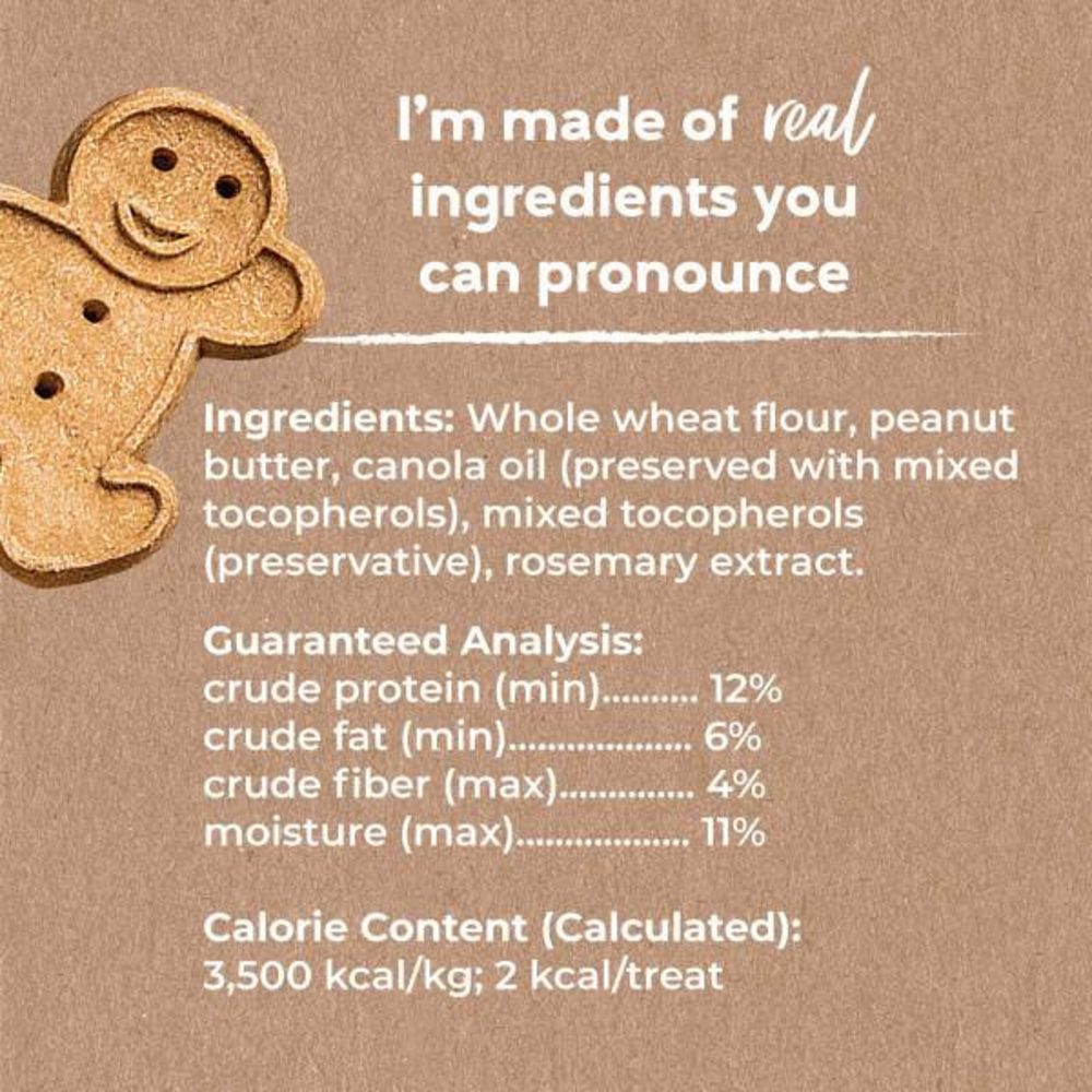 Whole wheat flour, peanut butter, expeller pressed canola oil, mixed tocopherols (natural preservative).