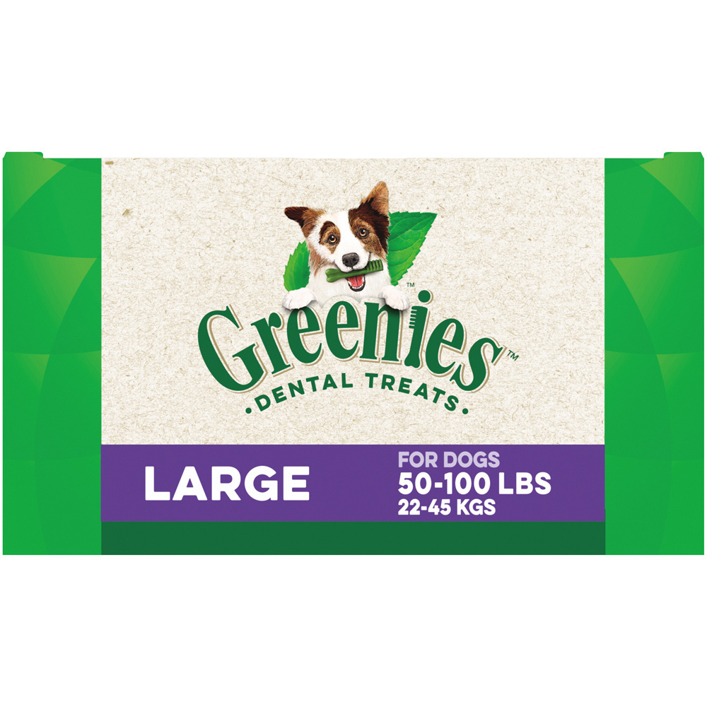 One GREENIES Original Dental Treat a day is all it takes for clean teeth, fresh breath and a happy dog. Your dog can't wait to sink their teeth into these delicious, original-flavor dental dog chews because they feature a delightfully chewy texture that fights plaque and tartar. Irresistibly tasty and incredibly powerful, GREENIES Treats for Dogs are recommended by veterinarians for at-home oral care. Best of all, these natural dog treats are made with highly soluble ingredients that are safe and easy to digest. Give your dog the mouth-wowing treat that helps promote their overall health with GREENIES Dog Treats. Natural Dog Treats Plus Vitamins, Minerals and Other Nutrients.
