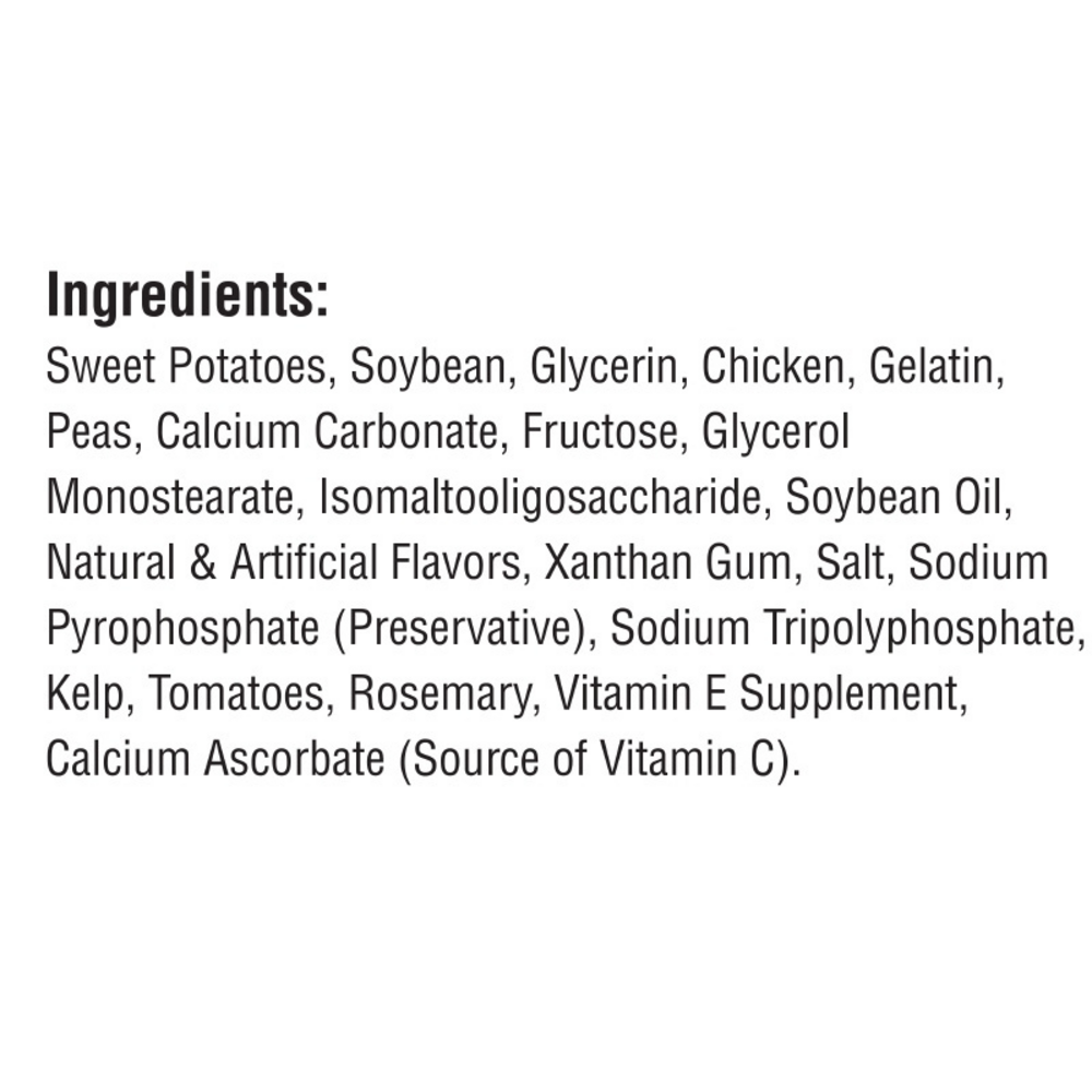 - Nourishing vegetables like sweet potatoes, soybeans, peas and kelp combine with high-quality protein for an irresistible bite