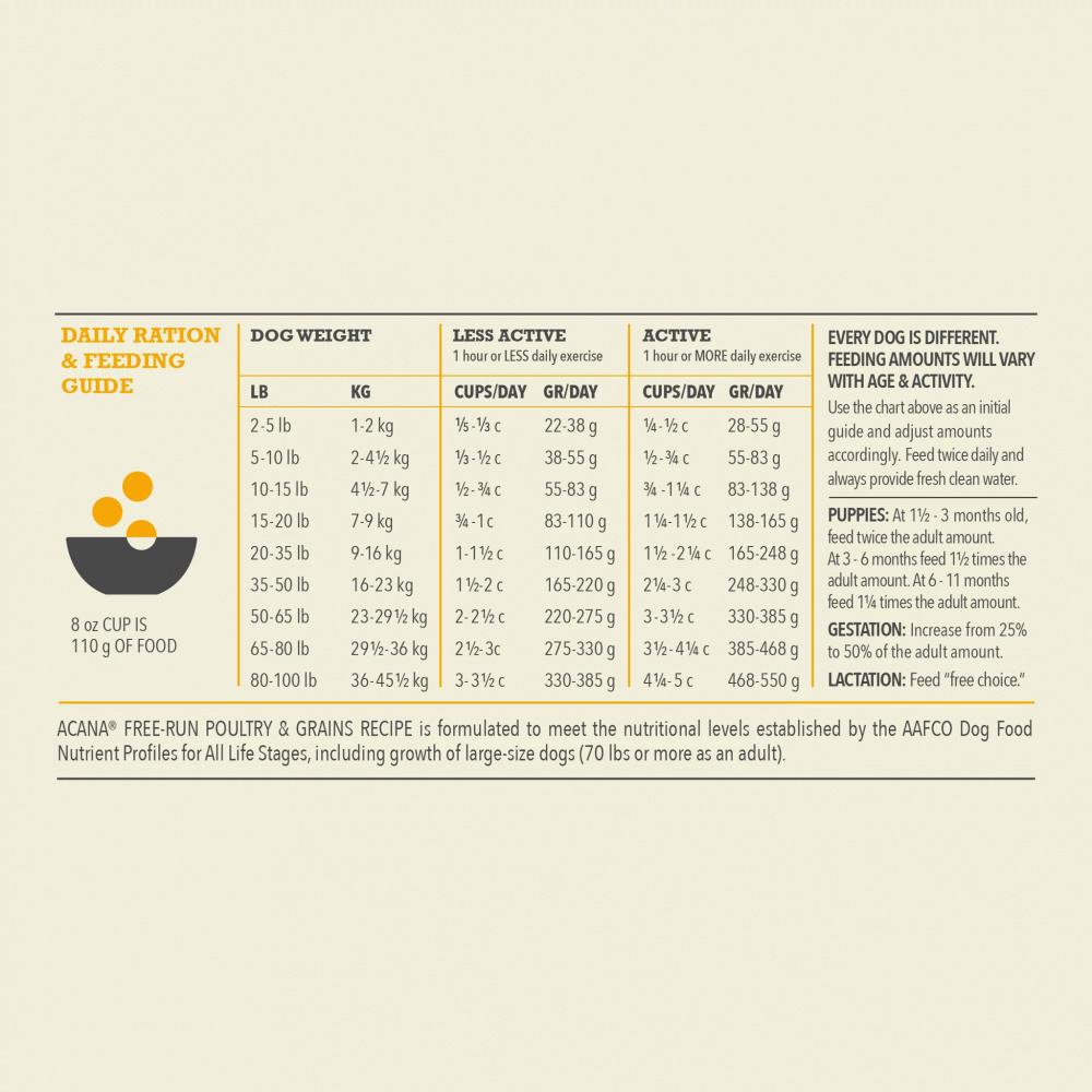 - One (1) 22.5 lb bag of ACANA Wholesome Grains Free-Run Poultry*** & Grains Recipe Dry Dog Food