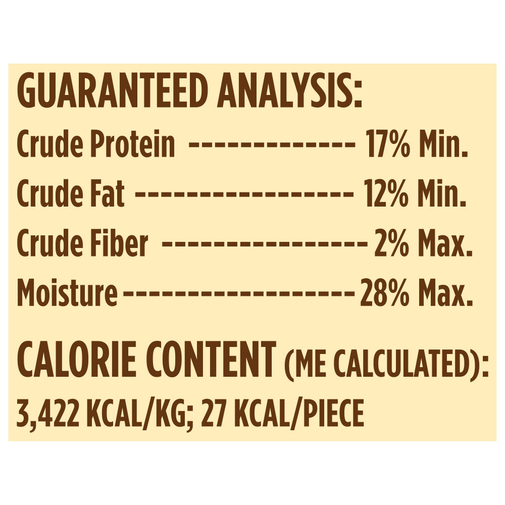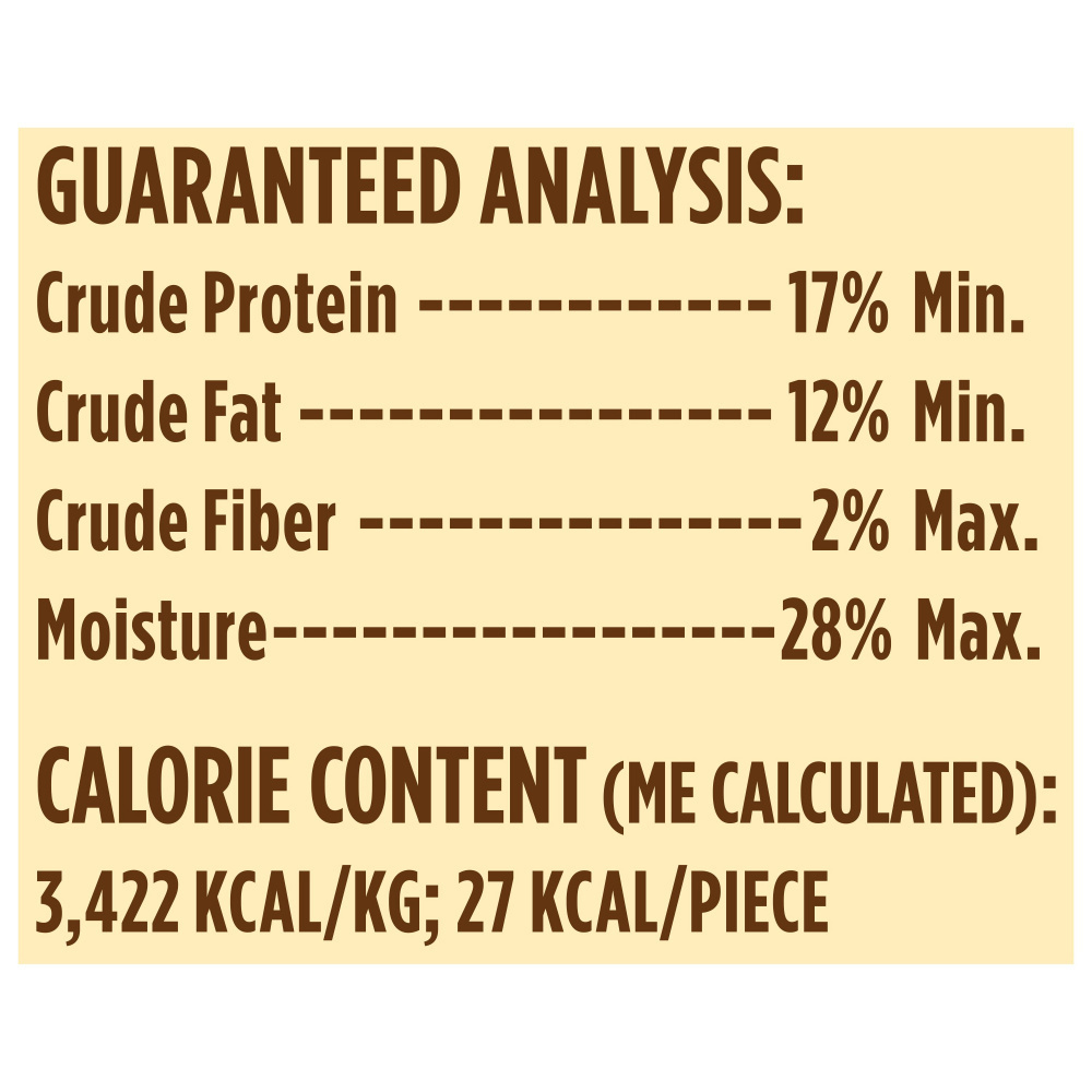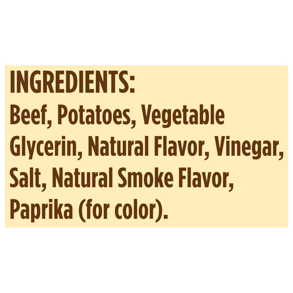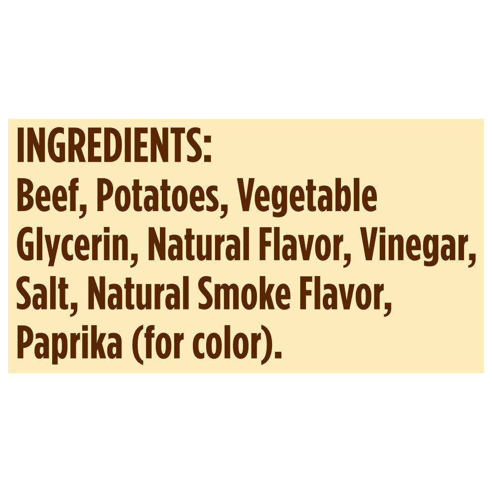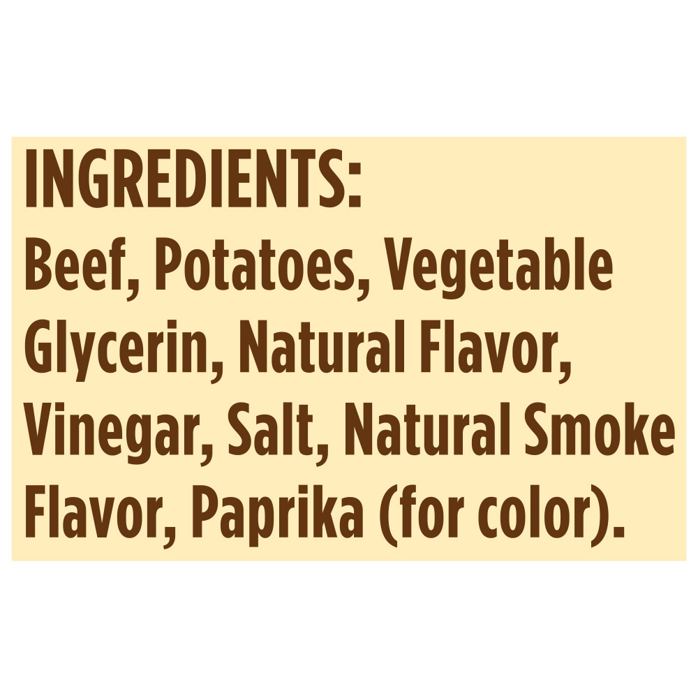 Beef (includes sirloin steak), chicken, ground rice, vegetable glycerin, dried cane syrup, natural flavors, salt, distilled vinegar, colored with paprika and caramel.Guaranteed Analysis