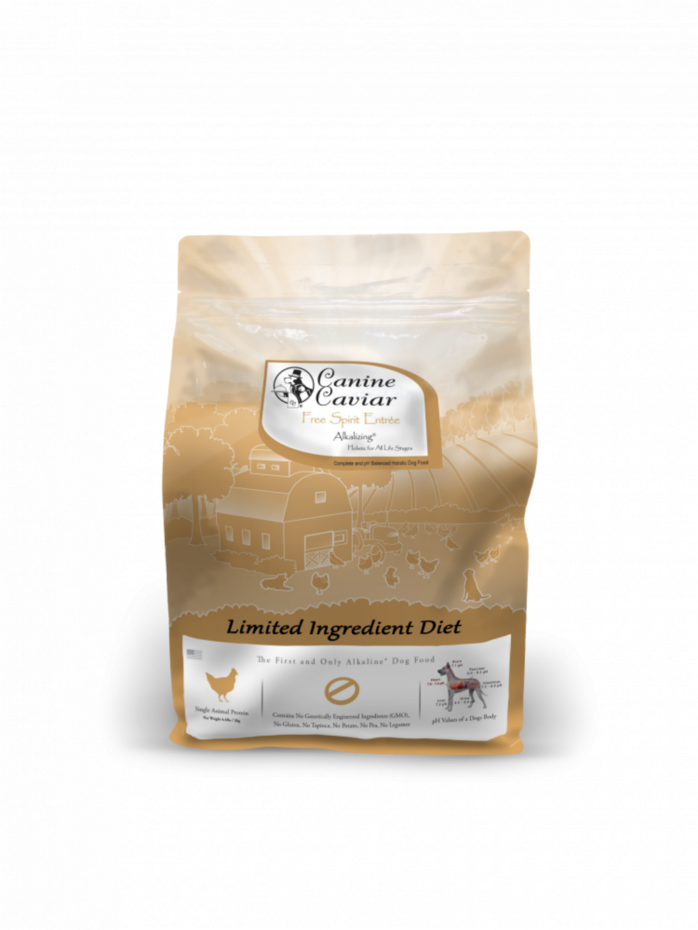 Canine Caviar’s Free Spirit Limited Ingredient Alkaline Holistic Dog Food is a customer favorite, providing the necessary nutrition your pet needs to ensure a healthy and natural lifestyle. Canine Caviar’s Free Spirit is designed for all breeds and sizes. It is a food designed for all life stages but is also a great choice for large breed puppies. This formula is a complete and balanced diet that uses dehydrated chicken and pearl millet. -Single protein diet -Single carbohydrate diets -Made with fresh dehydrated meat that is hormone, pesticide and antibiotic free. -Does not contain chemical preservatives, by-products, GMO, glutens, BHA, BHT, ethoxyquin, corn, wheat or soy.