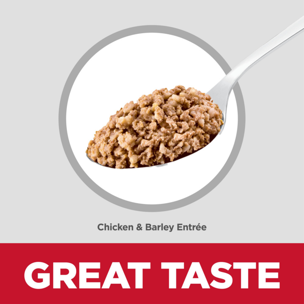 As your puppy grows, you'll want a dog food that can keep up. Hill's® Science Diet® Puppy Chicken & Barley Entrée dog food is a delicious wet food that provides precisely balanced nutrition for the overall health and wellbeing of your pet. Made with real chicken and wholesome grains, this canned adult dog food made with natural ingredients adds protein for lean muscle maintenance and DHA from fish oil for healthy brain & eye development. There’s more to love with the new look of Science Diet®. Some of our products also have new names, new kibble shapes & new formulas.• High-quality protein to help your puppy build and maintain lean muscle• Made with purposeful, easily digestible ingredients your young dog will love• Pup-friendly formula with a powerful antioxidant blend for lifelong health• Promotes strong bones and strong teeth with balanced minerals• Made with natural ingredientsChicken & barley recipe with great taste and precisely balanced nutrition to help your puppy build immunity and strong bones.