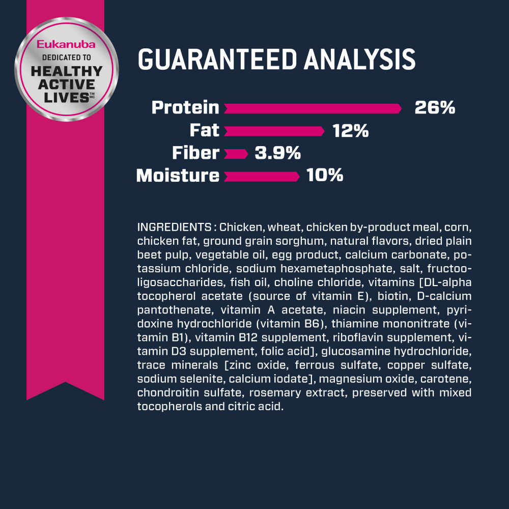 - MUSCLE & JOINT SUPPORT: Chondroitin sulfate and 50% more glucosamine (vs. Eukanuba Adult Medium Breed Dry Dog Food) help keep joints mobile and support lean muscles in large dog breeds