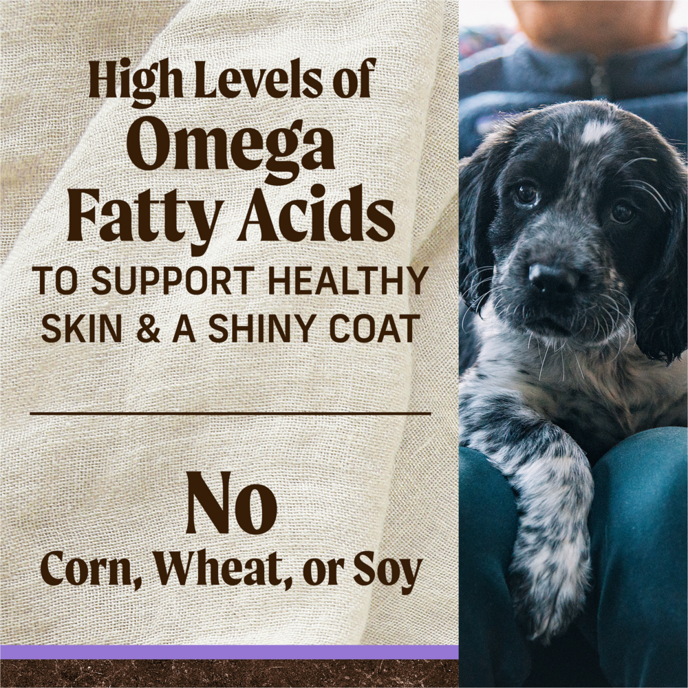 The Merrick Grain Free puppy food story is one of superior nutrition, delicious taste and using the highest quality ingredients. It’s about staying true to our roots and staying put in our original Hereford, Texas, USA kitchen—the one where Garth Merrick started our company and where we still hand craft our natural dog food recipes today. All Merrick Grain Free dry dog food recipes start with real deboned meat and real whole foods like sweet potatoes, blueberries, peas and more to provide natural dog food nutrition that’s complete and balanced—with leading levels of quality protein, plus Omega-6 and Omega-3 fatty acids to ensure great looking, healthy skin and coat.#1 INGREDIENT: DEBONED MEAT, FISH OR POULTRY: Merrick Grain Free puppy food recipes contain leading levels of high quality proteins for healthy energy levels, building muscle mass and a great taste your dog will love.