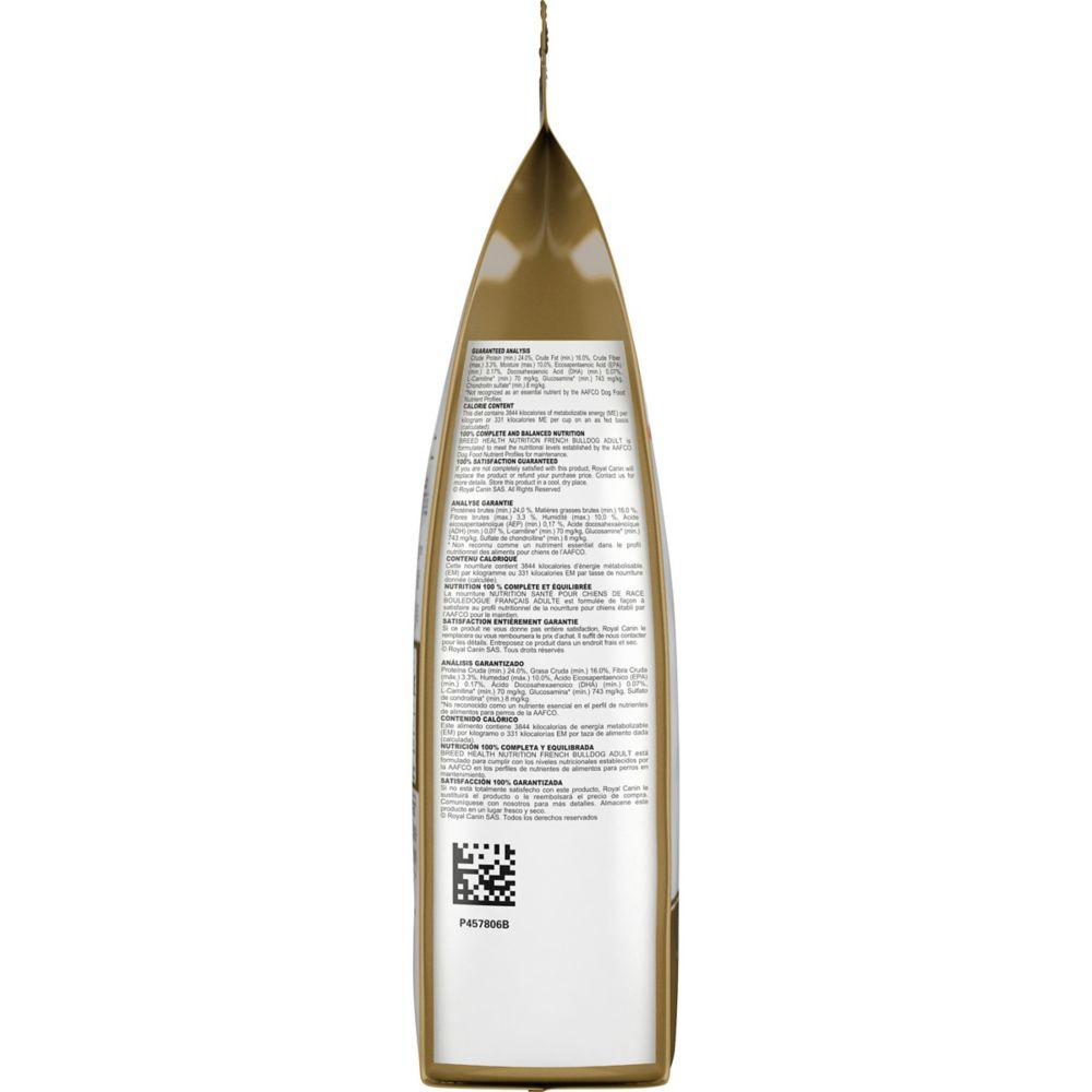 Royal Canin knows what makes your French Bulldog magnificent is in the details. With their pointy bat ears, Frenchies are adorable miniature bulldogs with extremely flat muzzles. They can benefit from a diet that’s easy for them to eat, provides muscle support, and aids with digestion to help cut down on their not-so-adorable gas. Royal Canin French Bulldog Adult dog food is tailor-made nutrition created just for your pure breed French Bulldog. This exclusive breed-specific diet is uniquely formulated for your French Bulldog, with the specific nutrients to help them thrive. The customized curved-shaped kibble is specially designed for your French Bulldog’s short muzzle and underbite, making it easy for them to pick up and chew. Precise protein content and L-carnitine support healthy muscles. Exclusive nutrients reinforce the skin barrier for healthy skin. And a combination of highly digestible proteins, precise fiber content, and high-quality carbohydrate sources supports healthy digestion to help decrease flatulence and unpleasant stool odors. With nearly 50 years of scientific research and observation, Royal Canin continues to deliver targeted nutrition to feed every pet’s magnificence. Not satisfied? Then neither are we. Our breed health formulas are 100% satisfaction guaranteed. (Just contact us for more details.