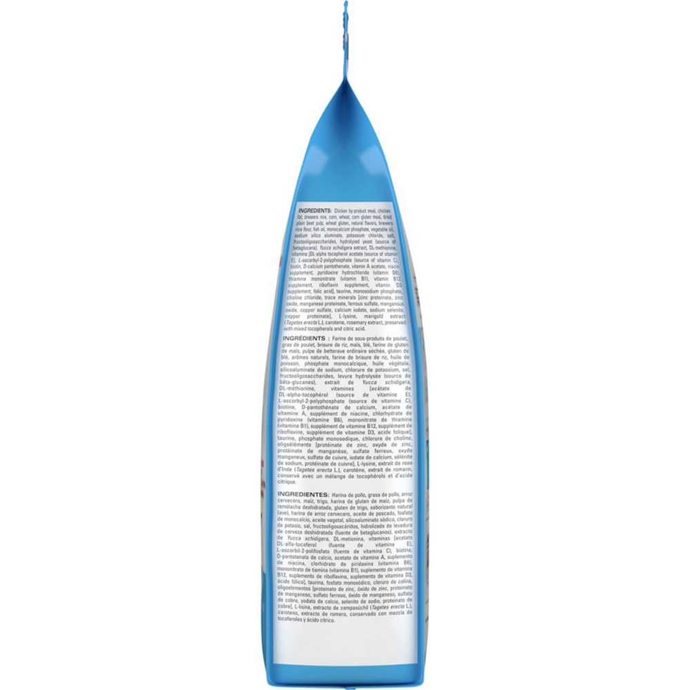 Chicken by-product meal, chicken fat, brewers rice, corn, wheat, corn gluten meal, dried plain beet pulp, wheat gluten, natural flavors, brewers rice flour, fish oil, monocalcium phosphate, vegetable oil, sodium silico aluminate, potassium chloride, salt, fructooligosaccharides, hydrolyzed yeast (source of betaglucans), Yucca schidigera extract, DL-methionine, vitamins [DL-alpha tocopherol acetate (source of vitamin E), L-ascorbyl-2-polyphosphate (source of vitamin C), biotin, D-calcium pantothenate, vitamin A acetate, niacin supplement, pyridoxine hydrochloride (vitamin B6), thiamine mononitrate (vitamin B1), vitamin B12 supplement, riboflavin supplement, vitamin D3 supplement, folic acid], taurine, monosodium phosphate, choline chloride, trace minerals [zinc proteinate, zinc oxide, manganese proteinate, ferrous sulfate, manganous oxide, copper sulfate, calcium iodate, sodium selenite, copper proteinate], L-lysine, marigold extract (Tagetes erecta L.), carotene, rosemary extract, preserved with mixed tocopherols and citric acid.