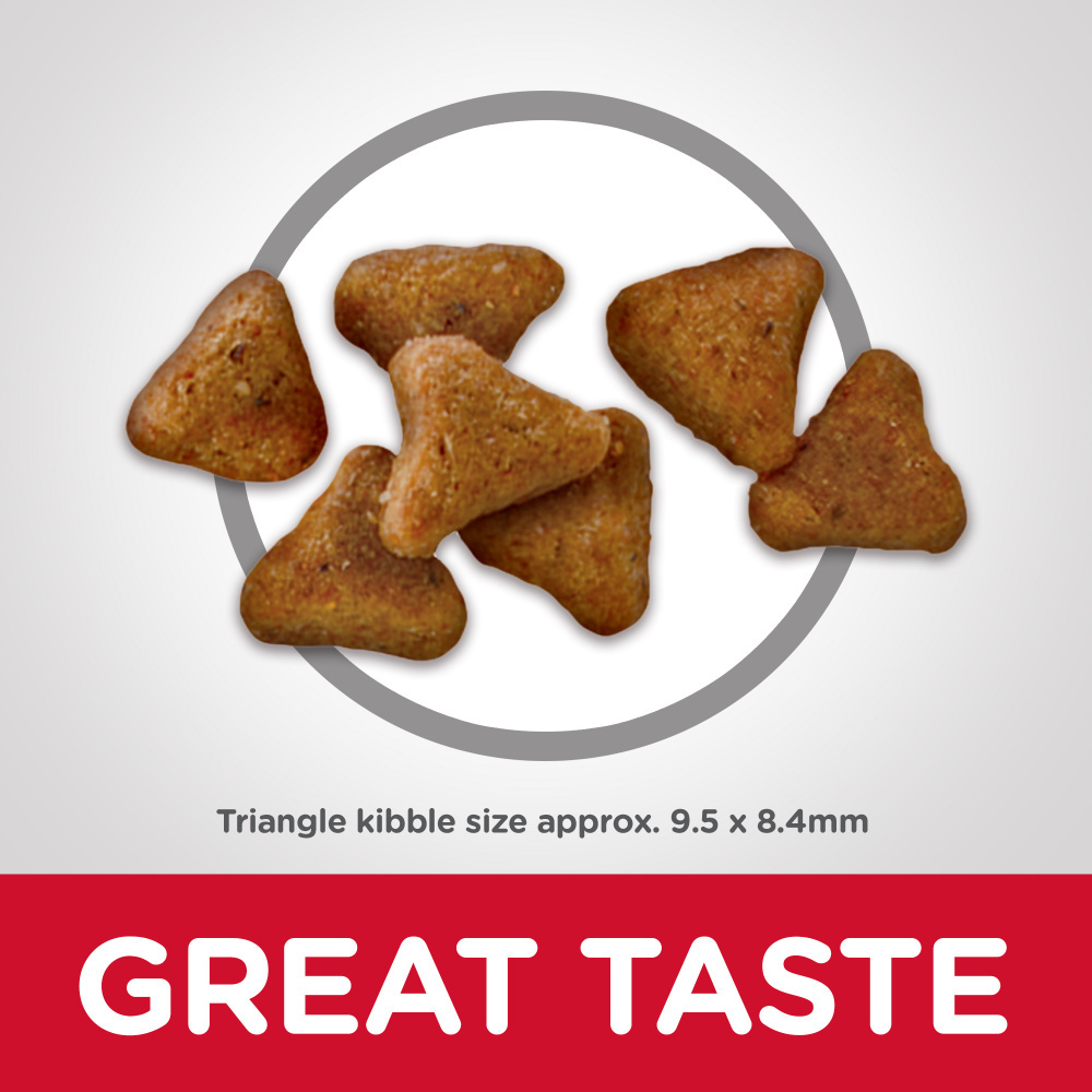 Chicken, Whole Grain Wheat, Corn Gluten Meal, Powdered Cellulose, Chicken Fat, Wheat Gluten, Chicken Meal, Chicken Liver Flavor, Dried Beet Pulp, Soybean Oil, Calcium Sulfate, Lactic Acid, Fish Oil, Potassium Chloride, Iodized Salt, Choline Chloride, vitamins (Vitamin E Supplement, L-Ascorbyl-2-Polyphosphate (source of Vitamin C), Niacin Supplement, Thiamine Mononitrate, Vitamin A Supplement, Calcium Pantothenate, Riboflavin Supplement, Biotin, Vitamin B12 Supplement, Pyridoxine Hydrochloride, Folic Acid, Vitamin D3 Supplement), Taurine, L-Carnitine, L-Lysine, minerals (Ferrous Sulfate, Zinc Oxide, Copper Sulfate, Manganous Oxide, Calcium Iodate, Sodium Selenite), Mixed Tocopherols for freshness, Natural Flavors, Green Peas, Apples, Cranberries, Carrots, Broccoli, Beta-Carotene.