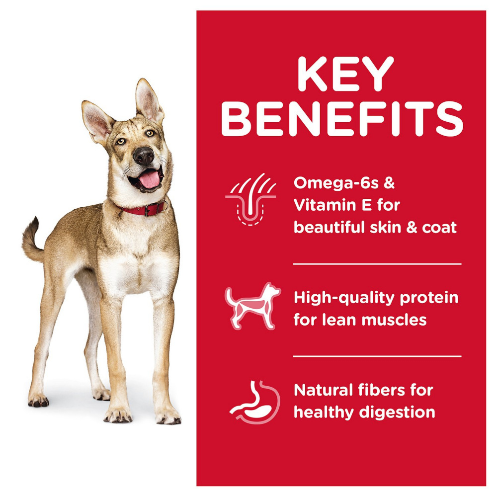 For grown dogs that like variety in their daily meal, Hill's® Science Diet® Adult dry dog food provides high quality, easy-to-digest ingredients that fuel the energy needs of your adult dog in a delicious lamb flavor. Packed with omega-6s & vitamin E to give your canine a healthy skin & coat, this premium dog food made with natural ingredients also provides high-quality protein to help your full grown dog maintain muscle. Since adult dogs need a strong gut, this grown dog food uses natural fibers to promote healthy digestion. This adult dog food is specially formulated with decades of cutting-edge research to be a great-tasting meal your adult dog can truly enjoy. There’s more to love with the new look of Science Diet®. Some of our products also have new names, new kibble shapes & new formulas.? Easily digestible ingredients to fuel the energy needs of adult dogs with a savory lamb flavor ? Provides omega-6 fatty acids & vitamin E for healthy skin & coat ? Provides your fully grown dog with high-quality protein for maintaining lean muscle ? Promotes healthy digestion for your adult dog with natural fibers ? Made with natural ingredientsSupports healthy immune system, digestion, lean muscle & beautiful coat.