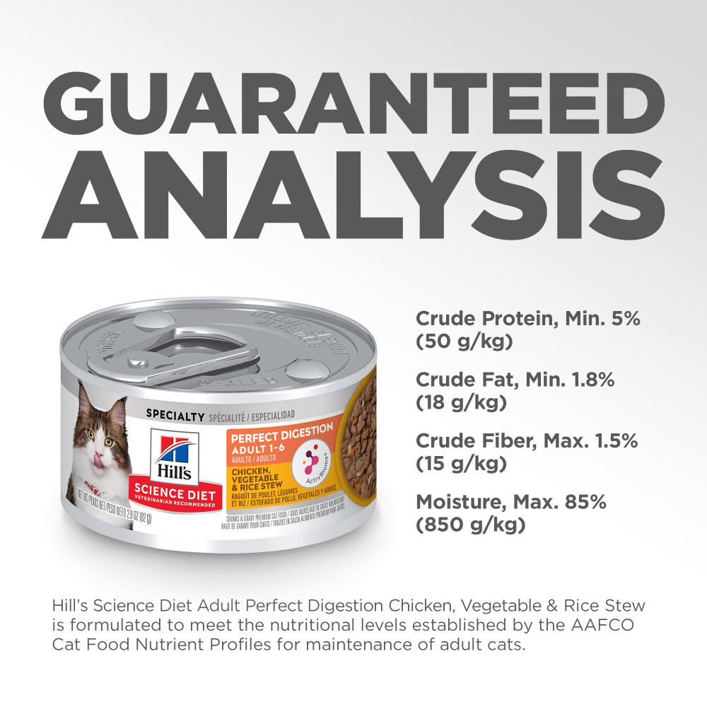 Every cat has an entire ecosystem living within them ? the gut microbiome, full of billions of diverse microbes unique to your pet. With the right nutrients to help balance their microbiome, you can actually affect not only their digestive health, but their overall well-being. That?s why we developed Science Diet Perfect Digestion canned cat food with our ActivBiome+ Technology ingredient blend of prebiotics. It?s a breakthrough nutrition that supports each cat?s unique gut microbiome for healthy digestion and balanced nutrition that helps your cat feel their best.