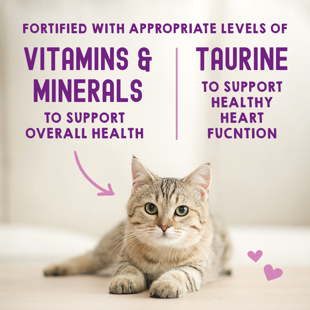 Chicken, chicken broth, salmon broth, dried egg, salmon, sunflower oil, tapioca, tricalcium phosphate, natural flavor, taurine, guar gum, magnesium sulfate, potassium chloride, vitamins (vitamin E supplement, thiamine mononitrate, niacin supplement, vitamin A supplement, pyridoxine hydrochloride, d-calcium pantothenate, riboflavin supplement, folic acid, vitamin B12 supplement, vitamin D3 supplement, biotin), minerals (zinc oxide, reduced iron, sodium selenite, manganese sulfate, copper amino acid complex, potassium iodide, copper sulfate), salt, choline chloride.