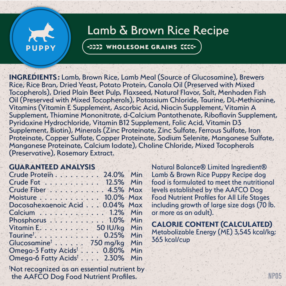 Natural Balance Limited Ingredient Puppy Dry Dog Food, Lamb & Brown Rice Recipe