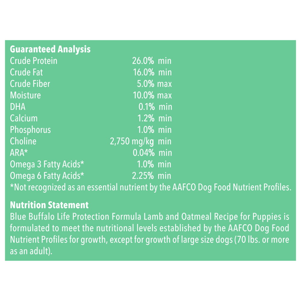 - FOR PUPPY DOGS: Specially formulated for puppies, BLUE Life Protection Formula® Puppy Food contains DHA and ARA (important fatty acids found in mother’s milk) to support cognitive function and retinal health.
