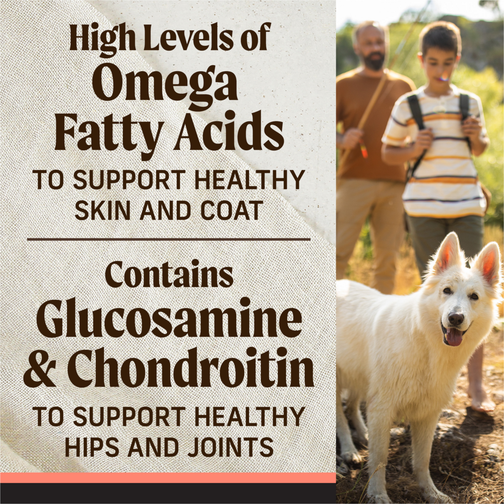Connect your dog to an ancestral diet with Merrick Backcountry Grain Free Dog Food, Pacific Catch Recipe. Real deboned salmon is the first ingredient in this natural with added vitamins, minerals, and nutrients chicken free recipe, a high protein dog food that helps maintain lean muscle mass and healthy energy levels. This real meat dog food with salmon and whitefish contains a holistic blend of kibble and freeze-dried raw pieces inspired by an ancestral canine diet and crafted to provide the taste of raw dog food in a convenient recipe. High levels of Omega-6 and Omega-3 fatty acids nourish your dog’s skin and coat in this premium adult dry dog food, as well as high levels of glucosamine and chondroitin to support healthy hips and joints. Backcountry Grain Free dry dog food is gluten free and poultry free for a wholesome and healthy dog food option. Merrick Backcountry dog food recipes are proudly founded in Hereford, Texas, crafted in USA facilities.