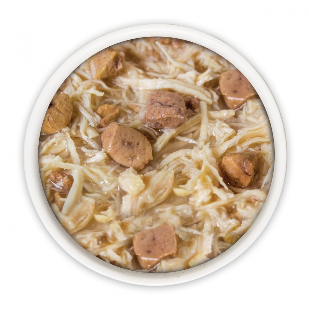 Can One (Paw Lickin’ Chicken): Chicken (Boneless, Skinless Breast), Chicken Broth, Potato Starch, Sunflower Seed Oil, Calcium Lactate, Xanthan Gum, Tricalcium Phosphate, Choline Chloride, Taurine, Zinc Sulfate, Vitamin E Supplement, Ferrous Sulfate, Nicotinic Acid (Vitamin B3), Thiamine Mononitrate (Vitamin B1), Calcium Pantothenate, Copper Sulfate, Riboflavin Supplement (Vitamin B2), Pyridoxine Hydrochloride (Vitamin B6), Vitamin A Supplement, Manganese Sulfate, Vitamin D3 Supplement, Folic Acid, Potassium Iodide, Sodium Selenite, Biotin, Vitamin B12 Supplement. Can Two (Nine Liver): Chicken (Boneless, Skinless Breast), Chicken Broth, Chicken Liver, Potato Starch, Sunflower Seed Oil, Calcium Lactate, Xanthan Gum, Tricalcium Phosphate, Choline Chloride, Taurine, Zinc Sulfate, Vitamin E Supplement, Nicotinic Acid (Vitamin B3), Thiamine Mononitrate (Vitamin B1), Ferrous Sulfate, Copper Sulfate, Manganese Sulfate, Calcium Pantothenate, Vitamin A Supplement, Vitamin D3 Supplement, Riboflavin Supplement (Vitamin B2), Pyridoxine Hydrochloride (Vitamin B6), Folic Acid, Potassium Iodide, Sodium Selenite, Biotin, Vitamin B12 Supplement. Can Three (Grandma’s Chicken Soup): Chicken Broth, Chicken (Boneless, Skinless Breast), Pumpkin, Carrot, Pea, Tapioca Starch, Sunflower Seed Oil, Calcium Lactate, Xanthan Gum, Tricalcium Phosphate, Choline Chloride, Taurine, Zinc Sulfate, Vitamin E Supplement, Ferrous Sulfate, Nicotinic Acid (Vitamin B3), Calcium Pantothenate, Thiamine Mononitrate (Vitamin B1), Copper Sulfate, Riboflavin Supplement (Vitamin B2), Pyridoxine Hydrochloride (Vitamin B6), Vitamin A Supplement, Manganese Sulfate, Vitamin D3 Supplement, Folic Acid, Potassium Iodide, Sodium Selenite, Biotin, Vitamin B12 Supplement. Can Four (Green Eggs & Chicken): Chicken (Boneless, Skinless), Chicken Broth, Egg, Potato Starch, Pea, Sunflower Seed Oil, Calcium Lactate, Xanthan Gum, Tricalcium Phosphate, Choline Chloride, Taurine, Zinc Sulfate, Vitamin E Supplement, Nicotinic Acid (Vitamin B3), Ferrous Sulfate, Thiamine Mononitrate (Vitamin B1), Calcium Pantothenate, Vitamin A Supplement, Copper Sulfate, Manganese Sulfate, Riboflavin Supplement (Vitamin B2), Pyridoxine Hydrochloride (Vitamin B6), Folic Acid, Vitamin D3 Supplement, Potassium Iodide, Sodium Selenite, Biotin, Vitamin B12 Supplement.